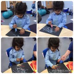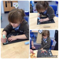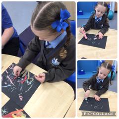 We have been very creative, making our own bonfire pictures using chalk and tissue paper to create bright, fiery effects. The children also practised their fine motor skills with firework-themed activities and worked hard on their cutting skills to make beautiful fireworks.