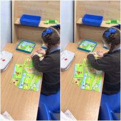 It has been a busy week for Green class. This week, we have been listening to songs that are linked in with some phonics sounds and all of the children have sat at the table to listen to this. Some children have completed an alphabet puzzle and some letter matching games, using the core board or communication board to indicate ‘more’ when doing this. We have continued our pencil control activities, with all children completing multiple pieces of work, showing some good progress of their fine motor skills.
