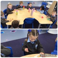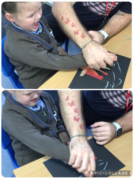 This week has been another busy week for the children in the Green class. We have seen lots of the children showing us longer levels of engagement with different activities particularly in our colour sorting activities. We have also seen some children becoming more familiar with the core board to request more and others continuing to build confidence when using the communication board. This week we have introduced some mark making and pencil control activities. All of the children have really enjoyed this and have been exploring using different hands to complete this.