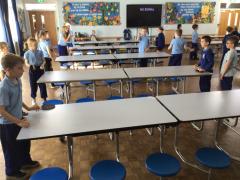 Today,a large and enthusiastic group of nearly 40 Key Stage two pupils, joined us for a special lunch.