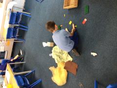 The children have settled in beautifully and have investigated all our resources and had fun doing it! Some children have been making themselves at home by taking off their shoes and socks!