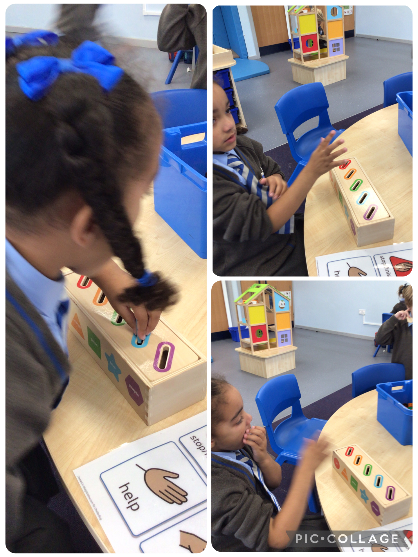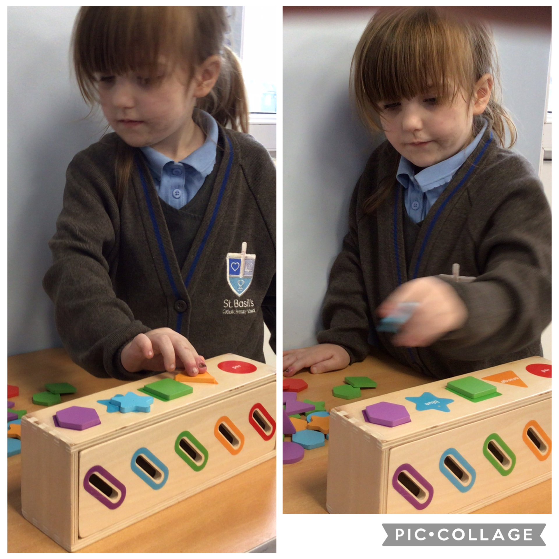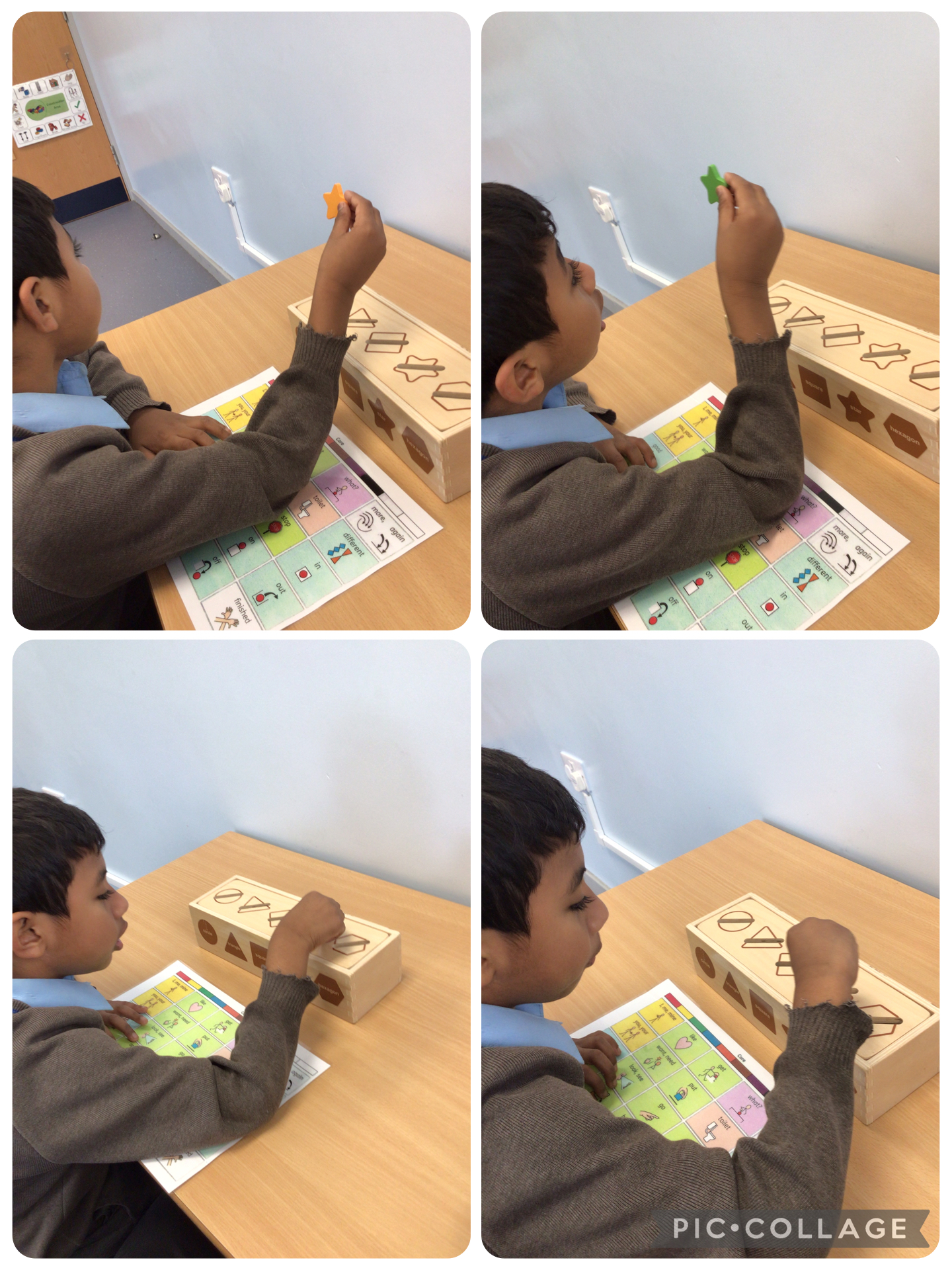 This week in Green class, we have been continuing with our shape theme and colour sorting activities. All of the children are becoming much more confident with this and are showing increased amount of engagement with these activities. We have slowly been introducing new colours and shapes for the children to recognise and some of them are beginning to be able to do this.