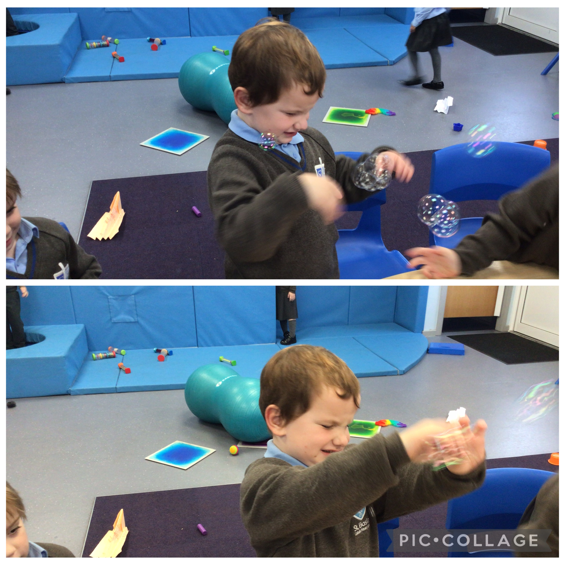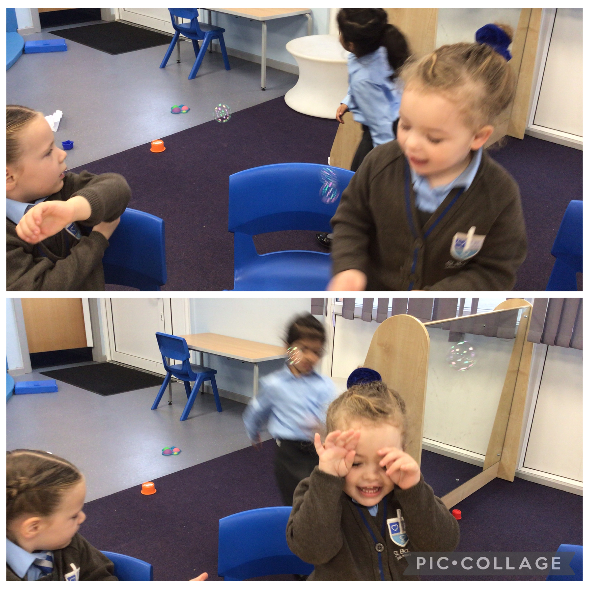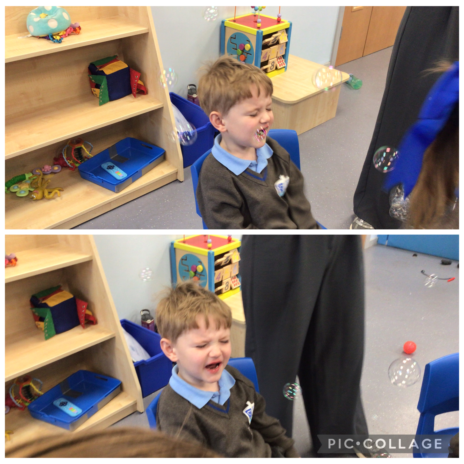This week we introduced bubbles into our bucket session, all the children enjoyed these very much and showed sustained looking and listening. We used key words such as “more” and “finished”.