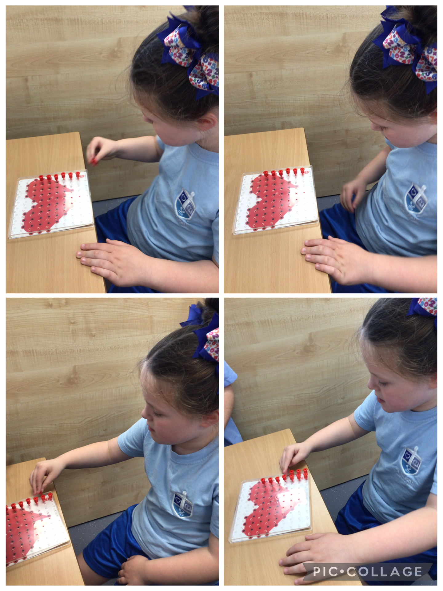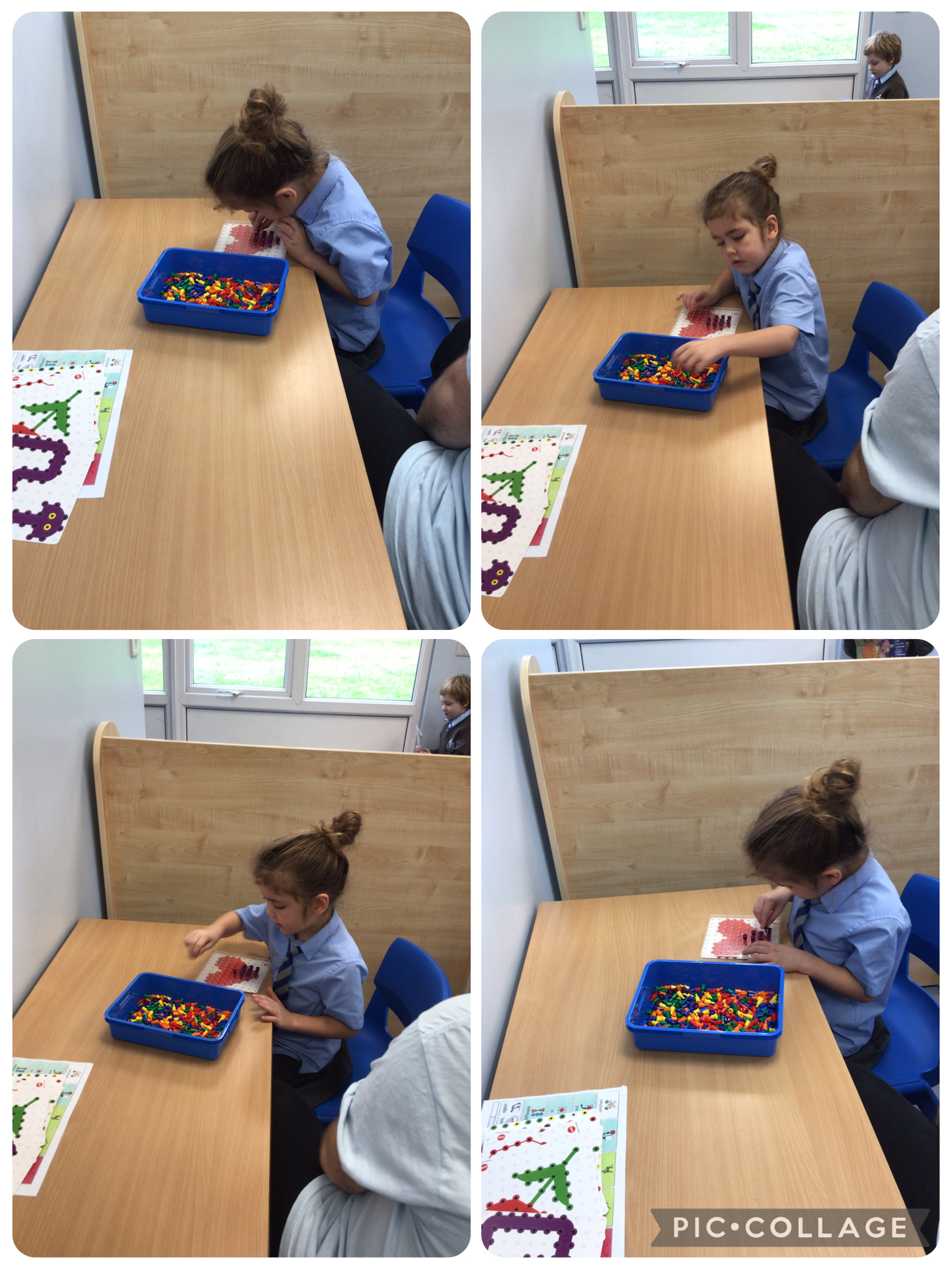 We have also introduced some fine motor activities, including a coloured peg board. It has been great to see some of the children copying the picture cards and others creating their own patterns.