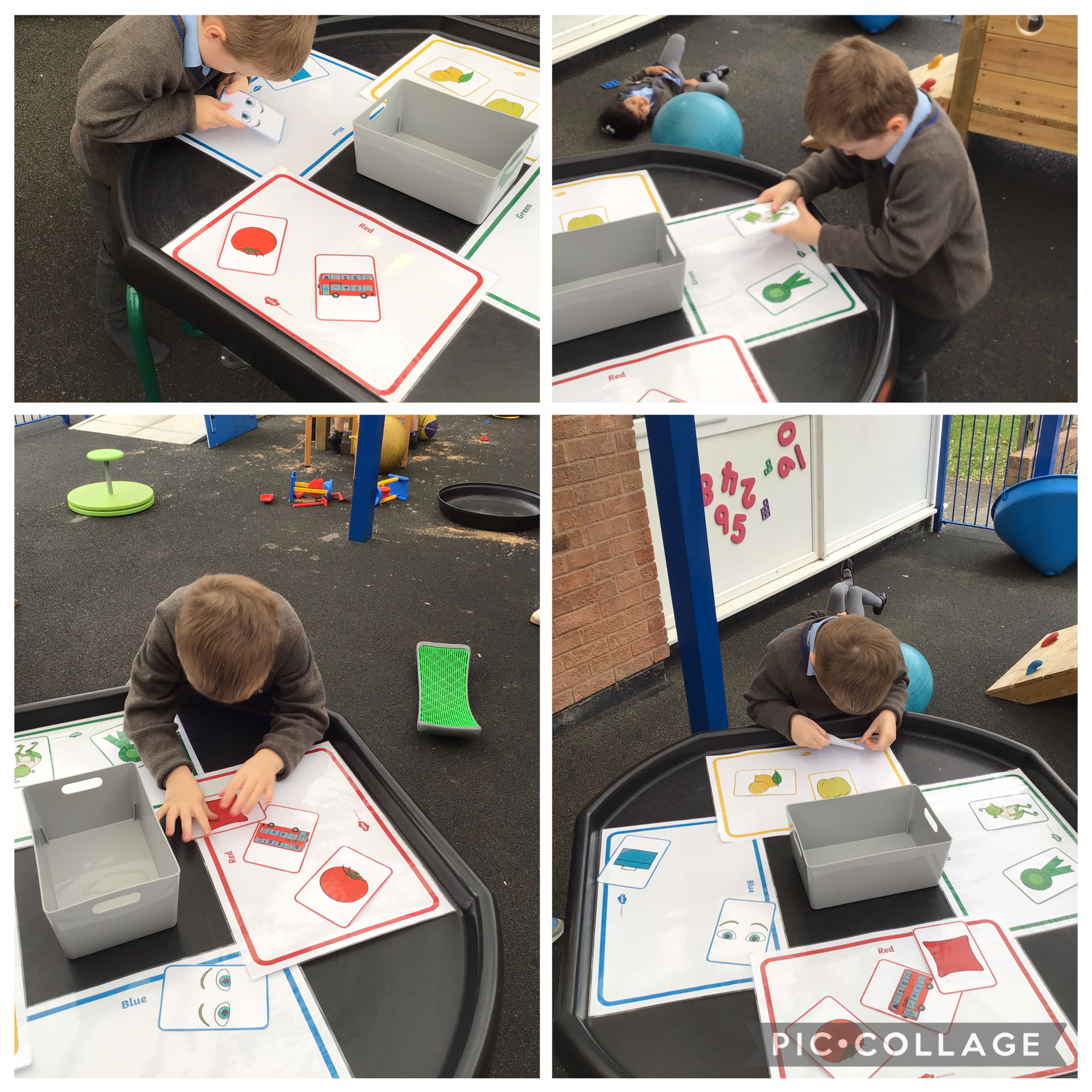 We have had a very busy week in Green class. This week we have been continuing to introduce the children to a range of sensory experiences including sensory circuits and sensory song. All of the children have really enjoyed this and we have seen increasing amounts of engagement as the week has progressed. We have also been introducing some colour sorting activities using a communication board for the children to request more when they are ready to move onto the next colour.
