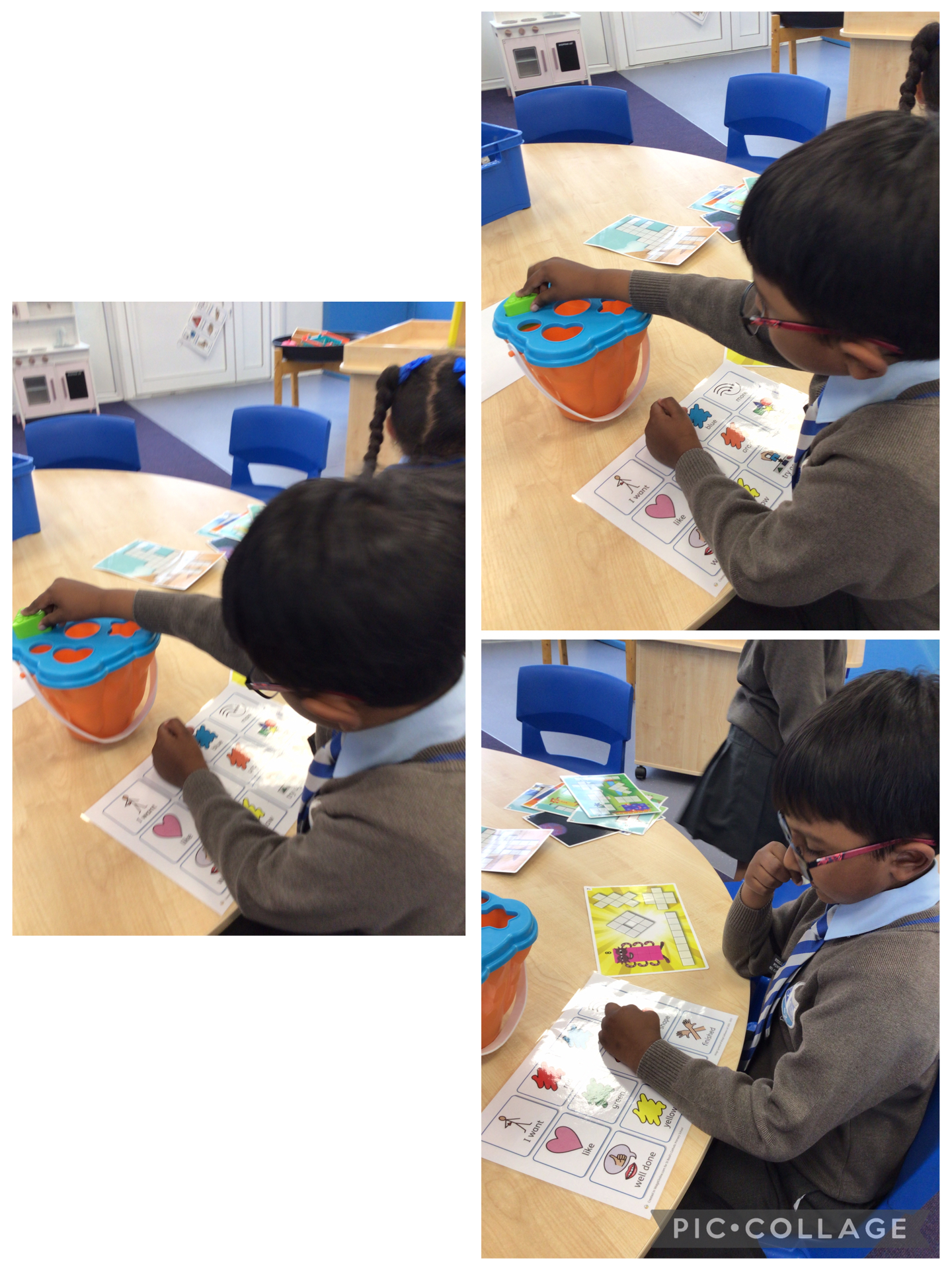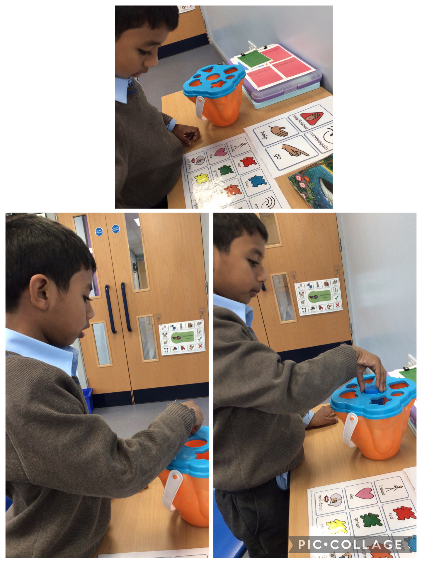 The children have settled back into our school routine well and have all been following objects of reference to transition around the resource base. This week we have been completing a shape sorting activity and focusing on the children requesting more either using a core board or communication board. We have also had lots of fun playing with the sand in our outside area.
