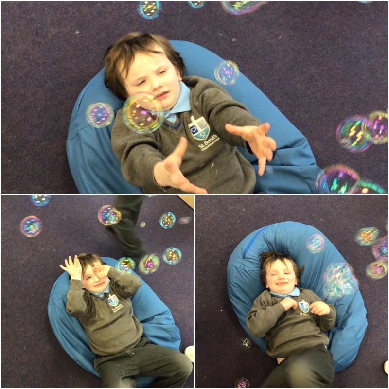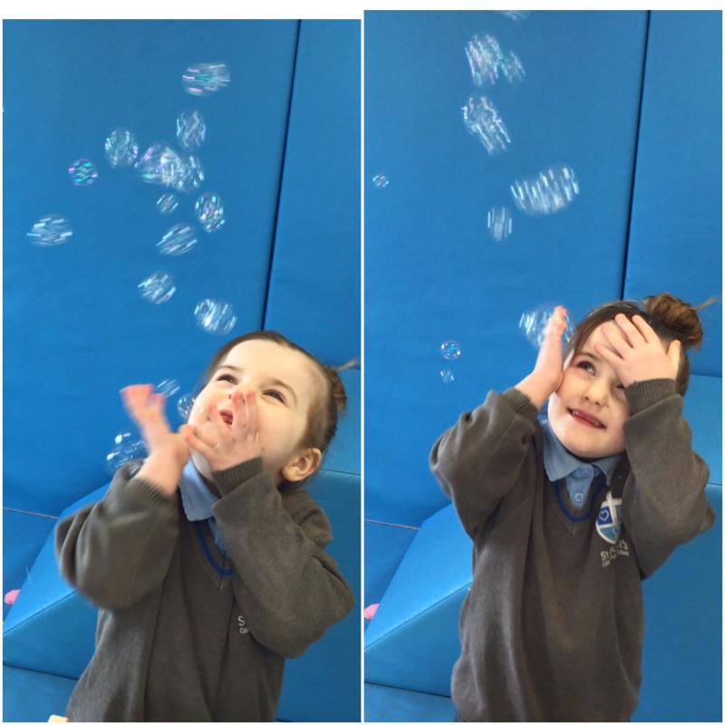 This week we introduced bubbles into our bucket session, all the children enjoyed these very much and showed sustained looking and listening. We used key words such as “more” and “finished”.