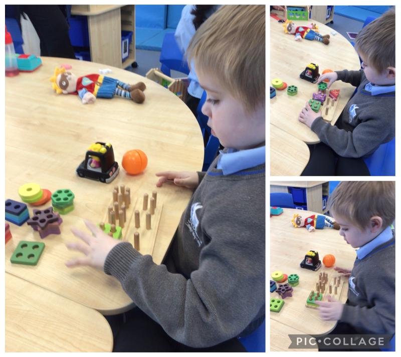 We have also introduced some fine motor activities, including a coloured peg board. It has been great to see some of the children copying the picture cards and others creating their own patterns.